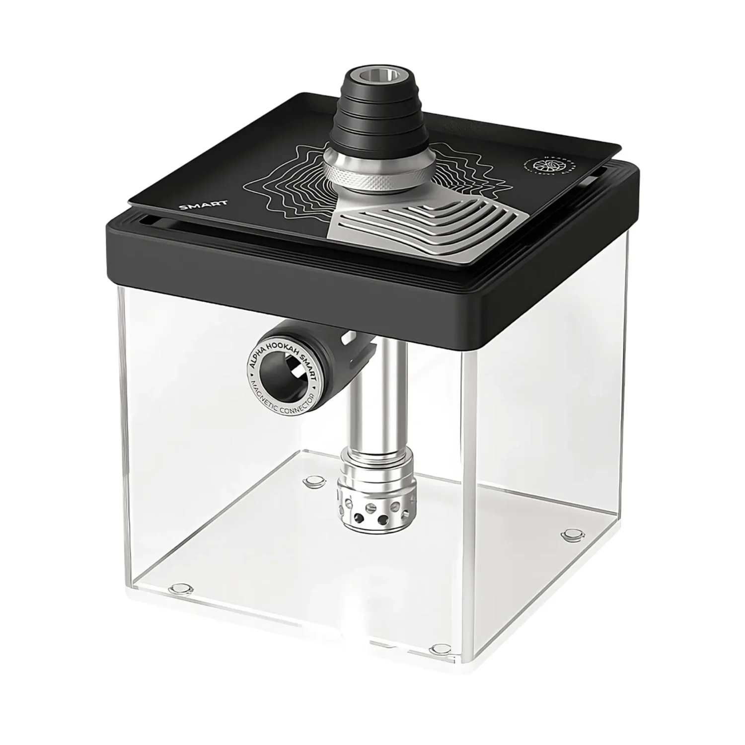 The Alpha Hookah Smart combines innovation, design, and functionality in a model that redefines compact cubic hookahs. With its cascading blow system, where smoke flows from beneath the tray creating a unique visual spectacle, and its technologically advanced design, this hookah offers a sophisticated and personalized experience. Designed to impress and satisfy even the most demanding users, it is ideal for those seeking a perfect balance between aesthetics and performance.